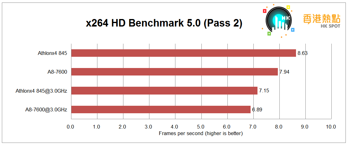 x264 HD Benchmark encodes a 1080p video clip into a high quality x264 video file.
